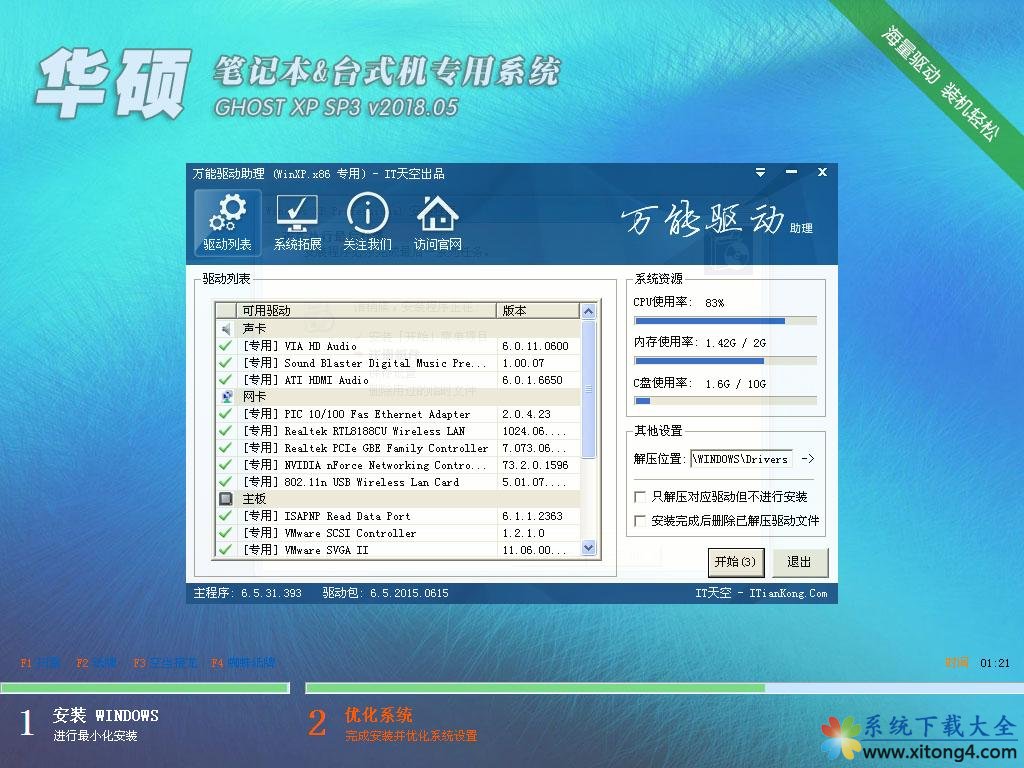 - 集成常见硬件驱动,智能识别+预解压技术,绝大多数硬件可以快速自动安装相应的驱动。