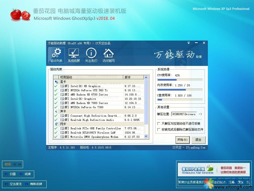 * 安装过程会运行驱动选择工具,此工具可智能判断所有的电脑硬件型号,最大限度地避免了因驱动冲突而蓝屏的现象。
