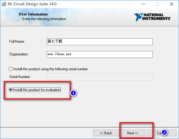 3.双击后会提示需要输入序列号,在这里我们选中下面第二行“Install this product for evaluation”(不输入序列号)。然后点击“Next”.如下图