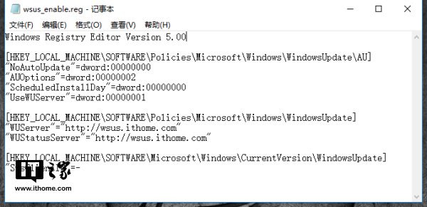 注:如需删除WSUS服务,仅需新建一个“文本文档”,编辑如下信息: