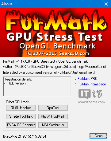 著名显卡性能及稳定性测试工具FurMark发布了1.17.0.0版,此次更新增加了对NVIDIA GeForce GTX 950显卡的支持,更新了Win10检测代码,苹果笔记本 windows7 密钥,更新GPU Shark 0.9.6.0 和 GPU-Z 0.8.5,更新ZoomGPU 1.14.0。