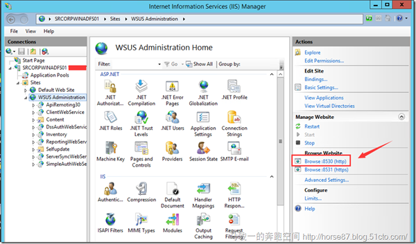 等服务器重启完毕之后,打开IIS,检查您所使用的WSUS使用的是 http 还是 https 协议,通常我们使用的都是8530的 http协议。