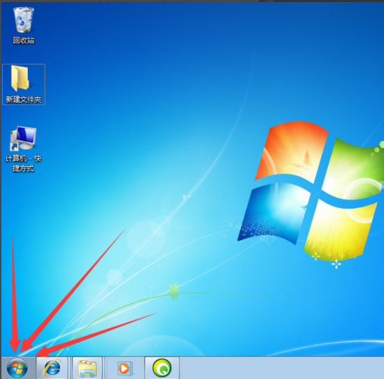 第一步:我们首先在win7系统的桌面上,点击“开始”按钮(看下图)。